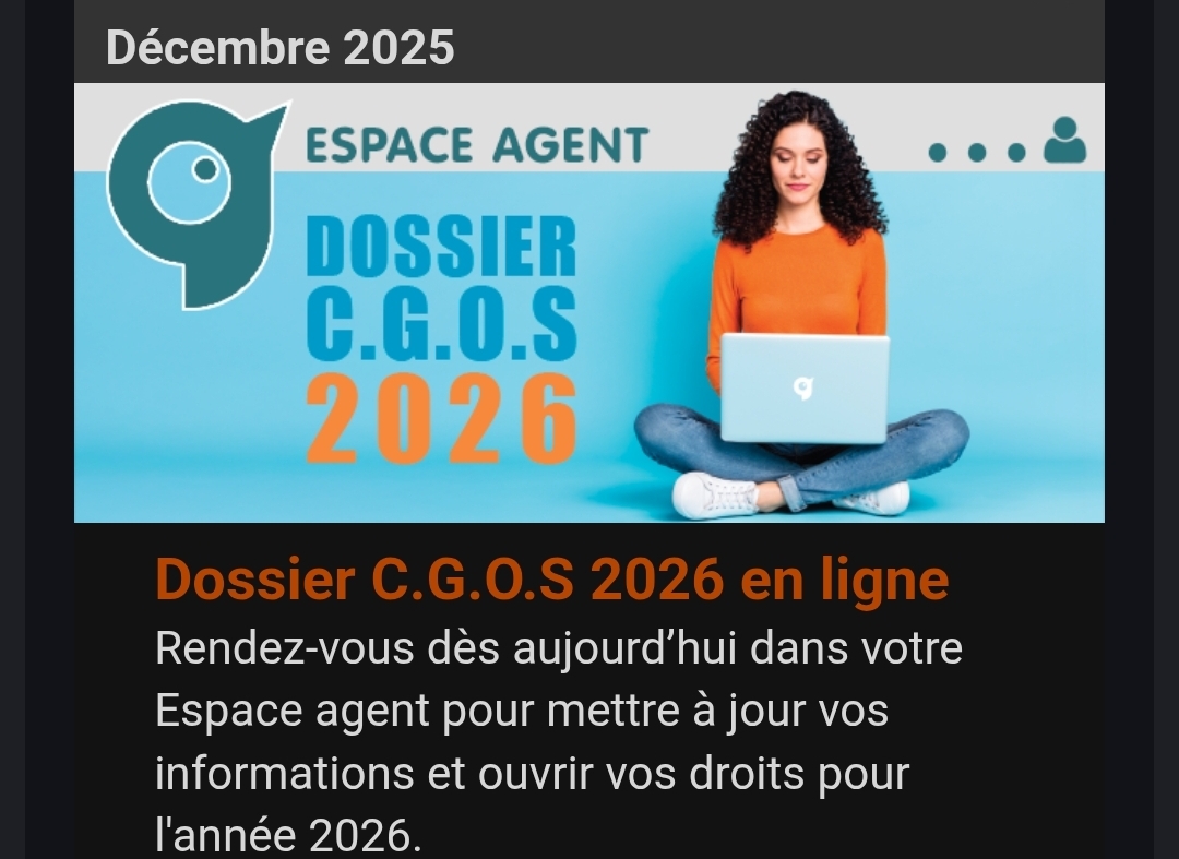 Tous à vos claviers pour la mise à jour de votre dossier CGOS pour l’année 2026 en cliquant sur le lien suivant :